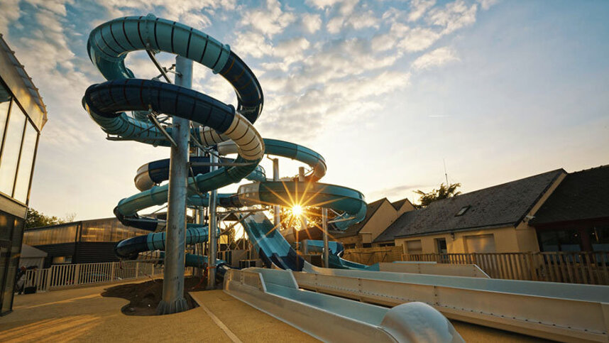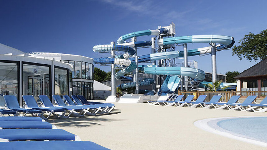 Fully equipped toilet blocks (cleaned three times a day) include accessible facilities. Restaurant (July/Aug). Shop, bar, snack bar with takeaway meals and pizza (all season). Heated outdoor and indoor pools, water complex with slides (all season). Tennis. TV room. Billiards. Minigolf. Sports ground. Play area. Children’s club (4-12 yrs) and evening entertainment in July/Aug. Play room for children 0-4 yrs. Bicycle hire. WiFi throughout (charged). Dogs are not accepted.