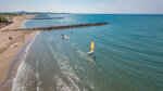 An excellent site for families, well maintained and attractively landscaped with flowering shrubs, giving a truly Mediterranean feel. The main area has beach frontage and touring pitches, the other half, across a lane, has high quality mobile homes. Staff are helpful and everywhere is neat and tidy. It is a large, busy site but well organised with a relaxed atmosphere. There are 692 good sized, level, grassy pitches, with 233 for touring (10A electricity) with some shade from many trees. Both areas have impressive pool complexes, the newest has a pool bar. The safe beach is alongside the site, so some pitches have sea views as does the restaurant high above the pool. Evening entertainment and cultural visits are arranged.