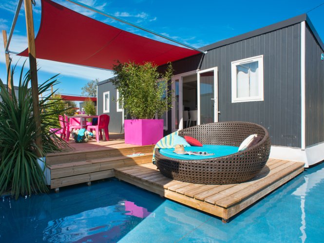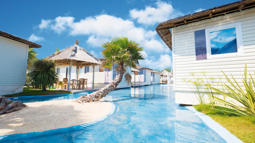 Very clean toilet blocks (one heated) have facilities for children (including a baby bath) and accessible facilities. Washing machines. Dog shower. Motorhome services. Well stocked supermarket. Hairdresser. Bars with pizzas, snacks, takeaway. Restaurant. Heated swimming pool complex (1,000 sq.m) monitored all season. Indoor aquatic area with slides. Wellness centre with sauna, steam room, jacuzzi etc. Gym. Excellent play areas. Miniclub (5-12 yrs). Teenagers’ club (13-17 yrs, only in July and August). Programme of sports and activities. Bicycle hire. WiFi (charged). New fitness room with cardio-training equipment. New multisports area and a padel-tennis.
