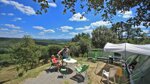 Some pitches are on gently sloping, lightly wooded ground; others are more open. All are of good size, with water, drainage and electricity (10A), semi-terraced and partly hedged. Some even come with views over Montclar village. In the style of a Roman amphitheatre, the swimming pool complex is set in a hollow basin surrounded by fine views. Access, although much improved, could be difficult for large, twin-axle caravans.