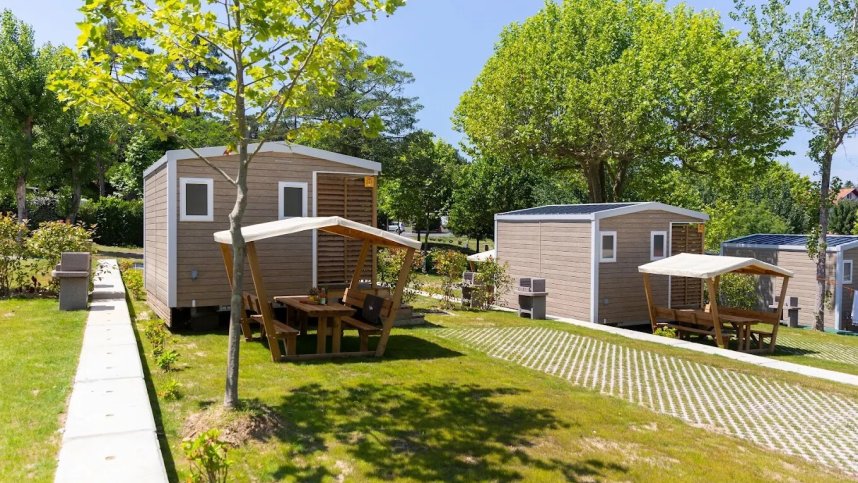 The single toilet block has some washbasins and showers together. Accessible facilities, Washing machines, dryers, ironing boards. Motorhome service point, Shop, bar, restaurant and takeaway (all season). Two swimming pools (all season). Children's splash park featuring a pirate ship, Games room. Tennis (charged in July/Aug). Table tennis, Gym, Rock-climbing wall,Entertainment during high season, 3x3 Streetball basketball court, Petanque, Play area. Padel court, Communal BBQ area, Free shuttle services, Bicycle hire. E.V. Charging, Pets allowed, WIFI.