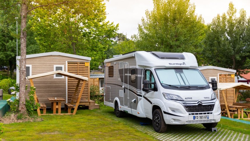 The Atlantic Ocean is a short walk away and is accessible to surfers. You will find an aquatic area with water slides, a covered swimming pool, a restaurant, high-quality accommodation, entertainment for all the family and a multitude of other services. The mobile homes and chalets are mainly around the outer edges of the site, some on terraces. Buses pass the gate for Bidart and Biarritz. There is a little daytime road noise but not intrusive. Some pitches now have private facilities available.