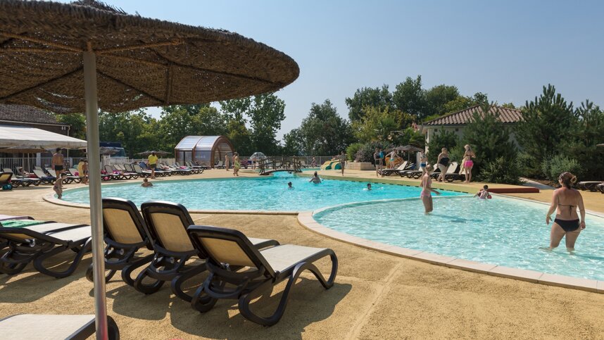 Three well positioned, modern sanitary blocks with accessible facilities. Laundry facilities. Shop. Restaurant, snacks and takeaway. Bar with disco area. 3 heated swimming pools, (including a covered one), 6 water slides, paddling pool. Jacuzzi. Gym. Sauna (charged). Trim trail. Bouncy castle. Small play area. Small field for volleyball and football. Table tennis. Library, crazy-golf, tennis (charged). Activities organised for children and adults all season. Massages (July/Aug). WiFi in bar area with 30 minutes free each day and on the rest of the campsite (charged).