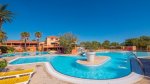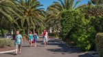 The newer part has been planted in the same way as the original areas. It has less shade but enjoys views across to the mountains. The facilities are opened all season but hours are adapted according to the number of visitors on site. An upstairs bar, newly renovated in 2013, has a long terrace which overlooks the attractive pool complex. A footpath of just less than 1 km. leads to the sandy beach. A new games area for children was built in 2012 and a water play park is planned.