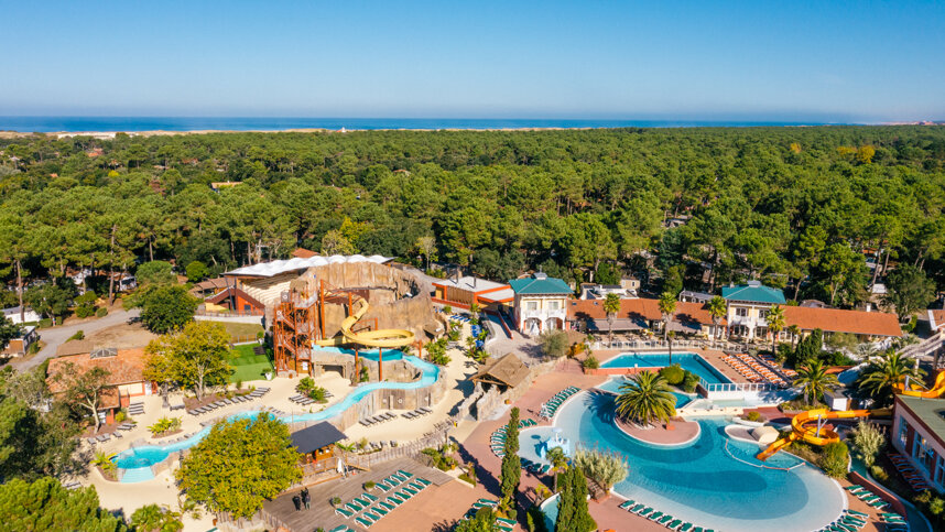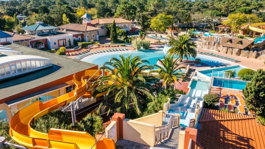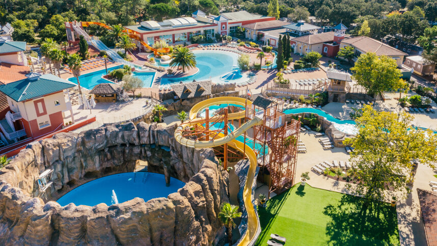 The extensive pool complex is remarkable, featuring several pools, a wild water river, toboggans, slides and a spectacular 'volcano'. In a sunny setting, all are surrounded by ample sunbathing terraces and overlooked by the excellent bar/restaurant. An 800-seat amphitheatre hosts entertainment. Visit the local resorts of Capbreton and Hossegor, which have a marina and fishing port, museums and beaches, plenty of surf culture, and fantastic seafood.