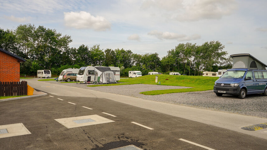 This is a good, level site with easy access and sizeable level hardstandings. The new toilet block is one of the best we have seen. The City’s Park and Ride is a short distance away providing an easy route to all that York has to offer. Parking is available for late arrivals. You won’t be able to resist walking back 200 yards to see the young foals in the field adjoining the Stud.